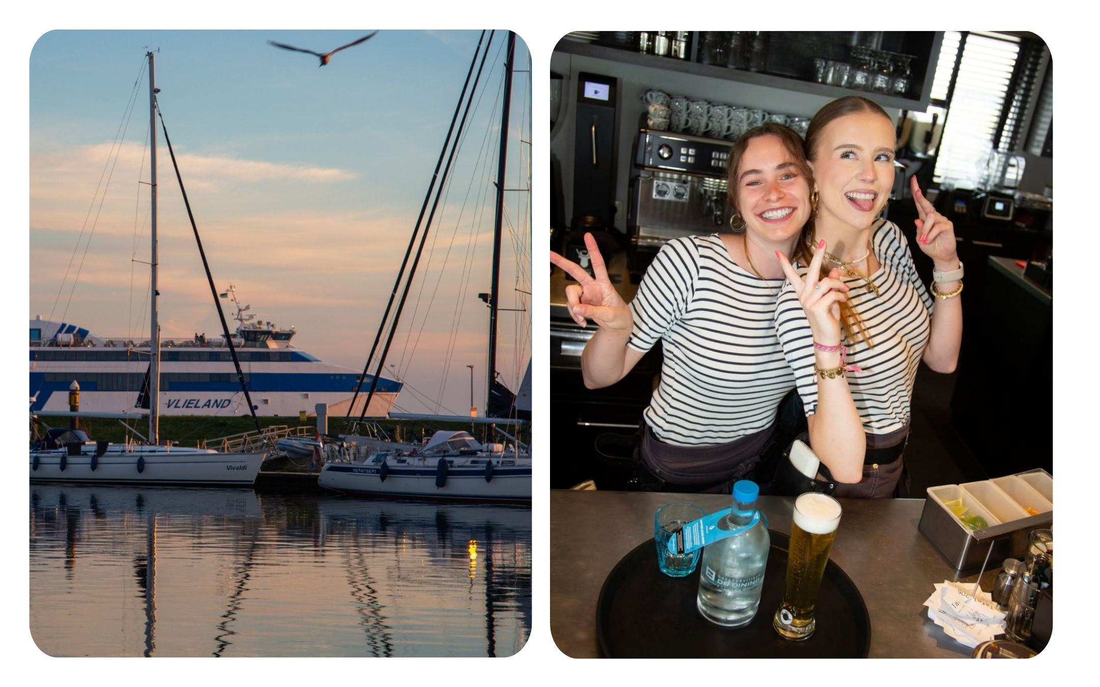 De Dining ligt midden in de haven van Vlieland! Hier komen eilanders, zeilers, toeristen en vaste gasten samen voor lunch, diner en borrels met uitzicht op de boten. Het is een plek waar overdag een relaxte energie hangt en de avonden levendig zijn met de meest mooie zonsondergang van het eiland!